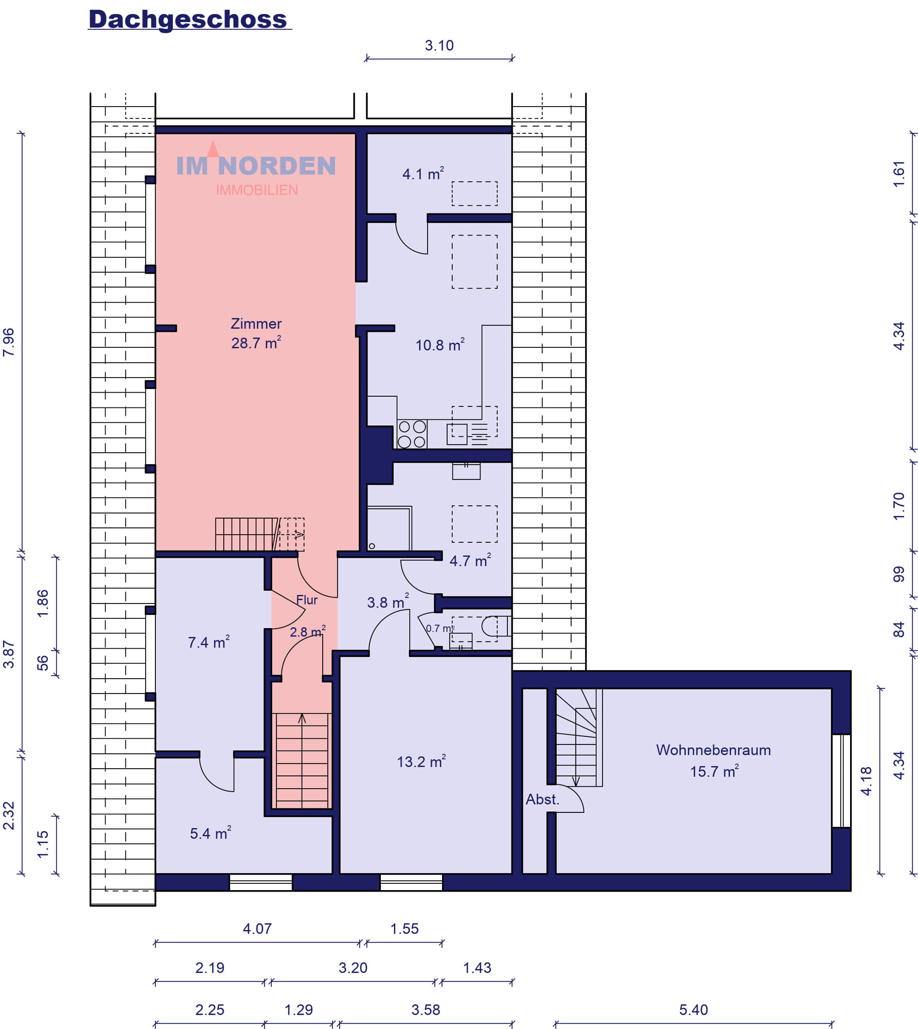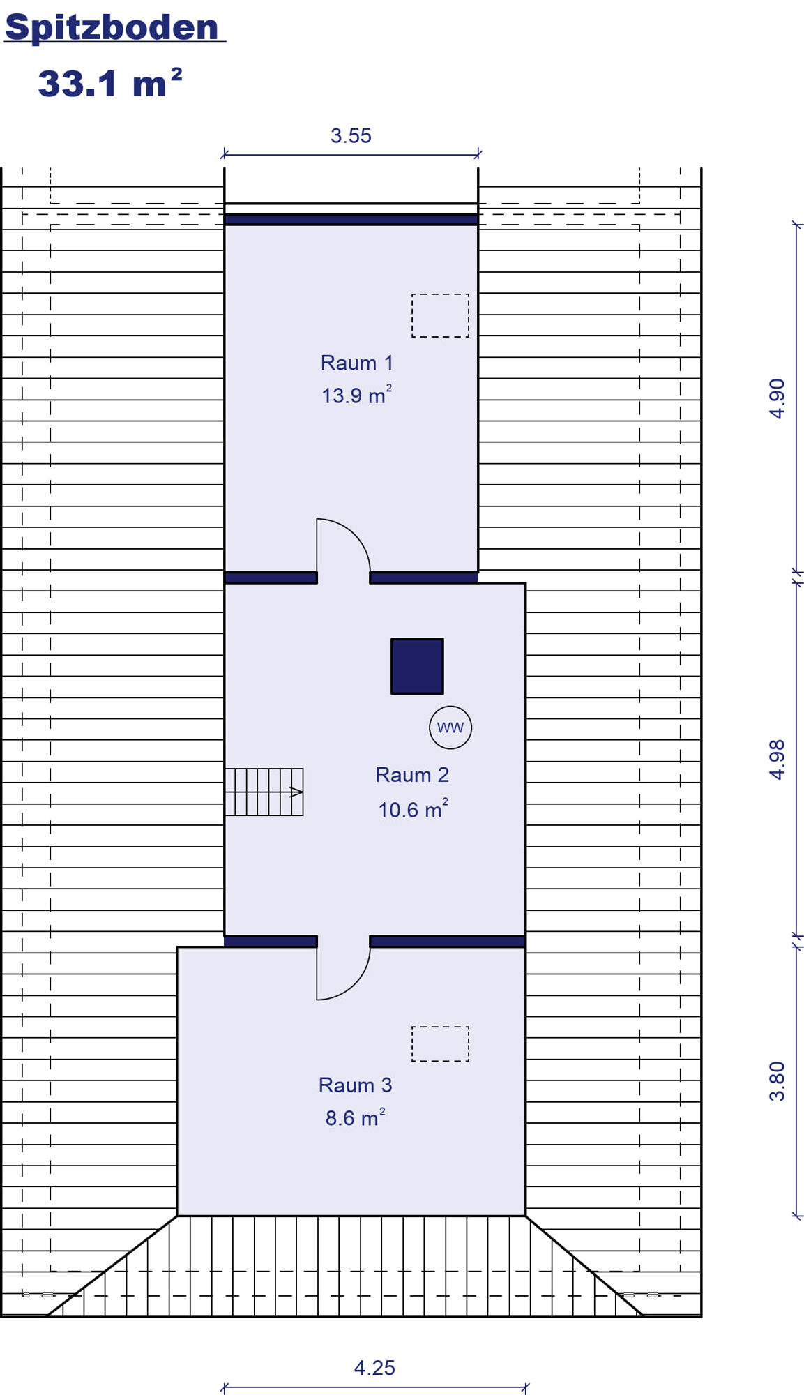 •Nutzfläche: ca. 33 m² (ausgebauter Spitzboden)